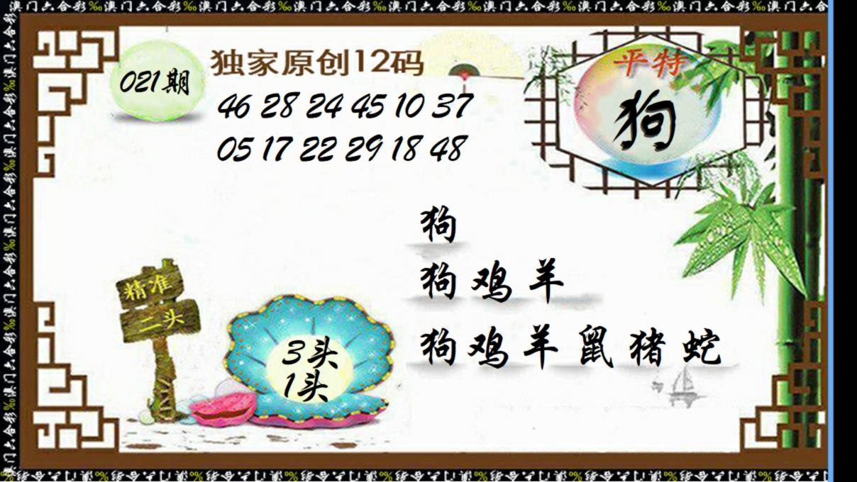 出售帖 021期:濠江彩经【③肖③码】〓 圆梦六合 濠江彩经